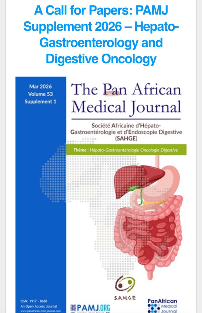 La Société Africaine d’Hépato-Gastroentérologie (SAHGE), société savante d’Afrique Francophone des maladies de l’appareil digestif, annonce avec fierté la parution prochaine du tout premier supplément publié sous l’égide du Pan African Medical Journal (PAMJ). Elle invite la communauté scientifique africaine et internationale à s’approprier ce supplément en contribuant activement à son développement.
